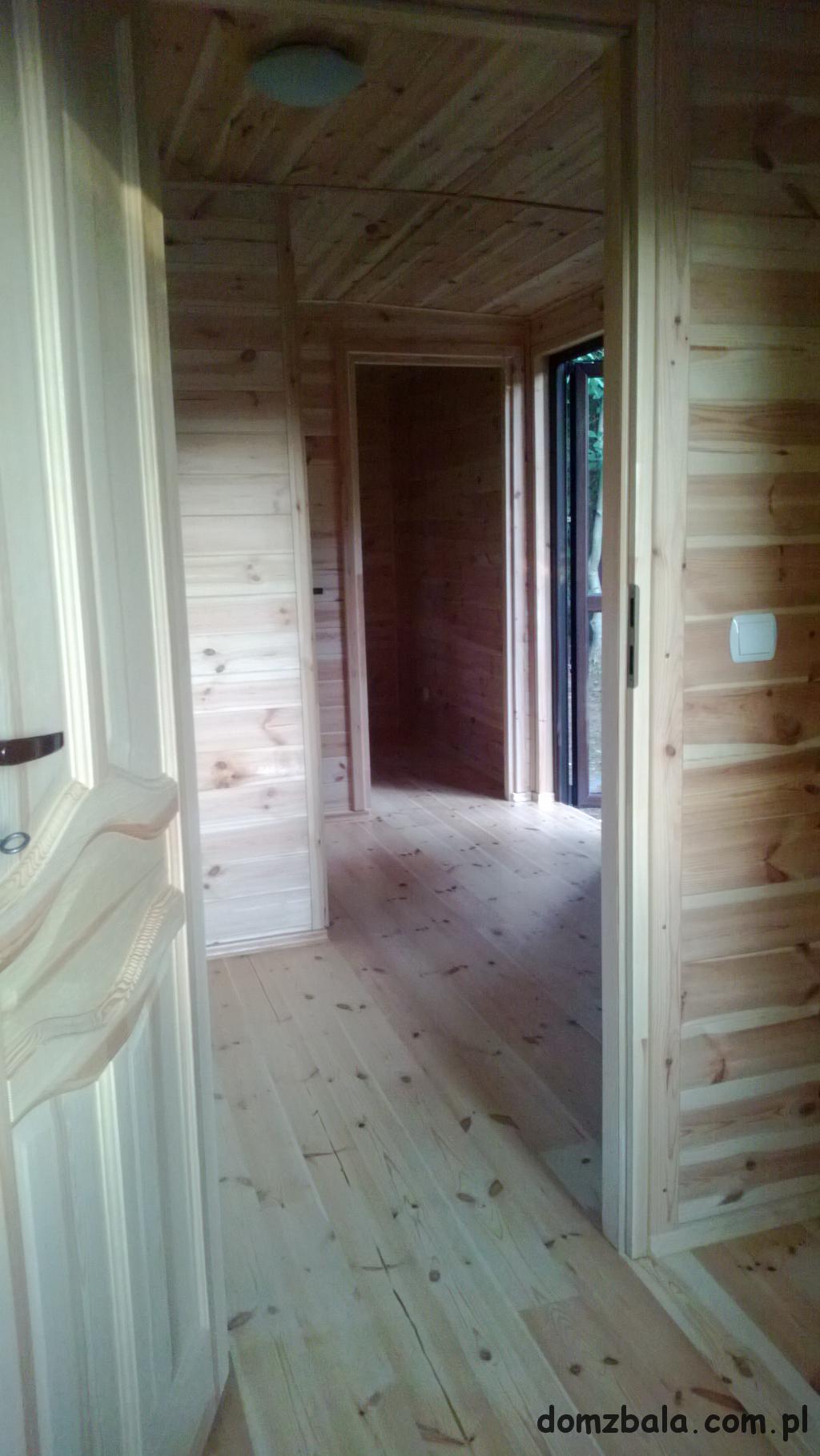 - Ściany zewnętrzne, wewnętrzne, działowe i sufit wykończone deską sosnową, szalówką.